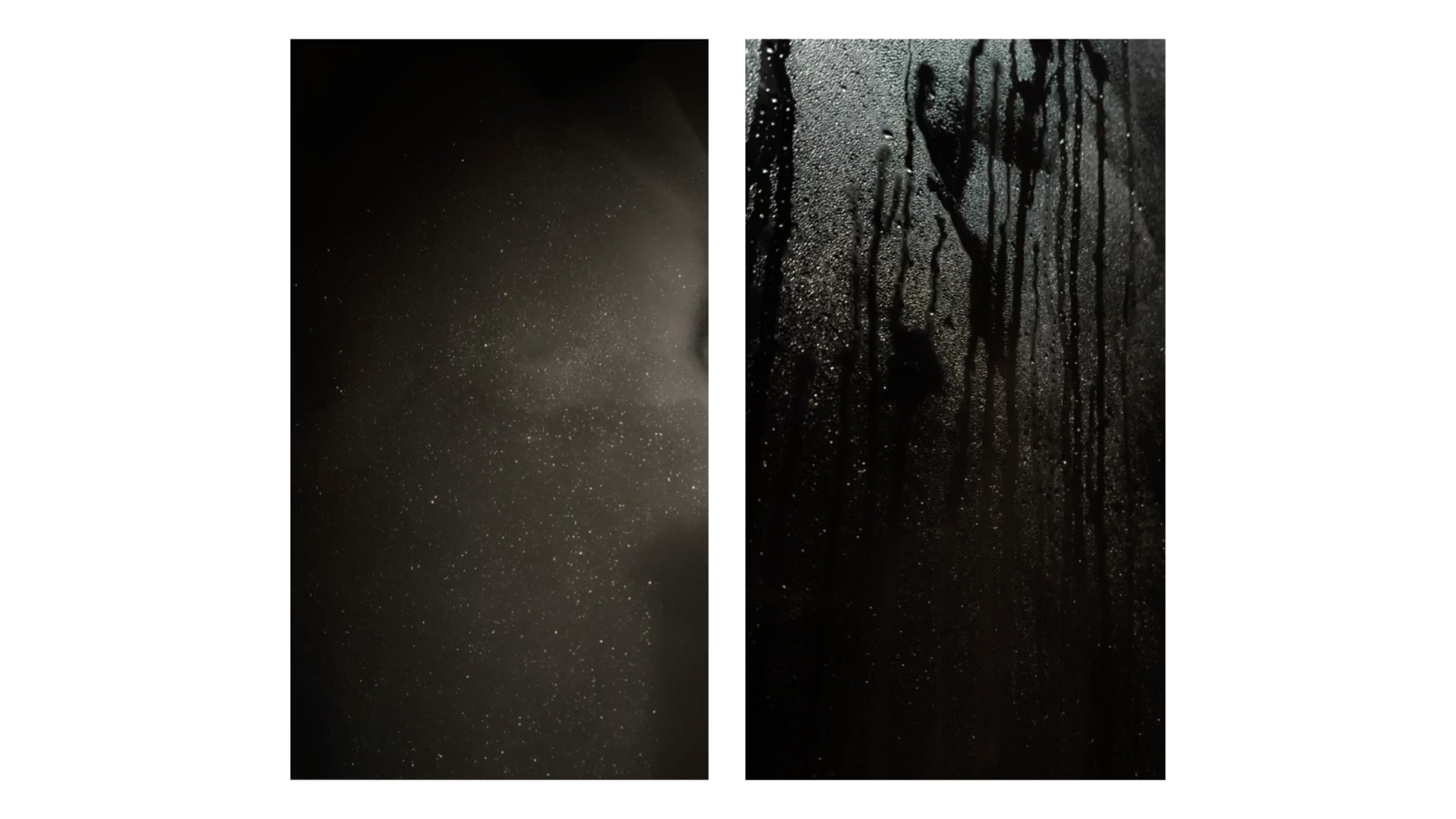 左边其实最开始是浴缸里的泡泡,而右边是洗澡时窗户上的水蒸气,这两张都是中下游日常拍摄的画面。