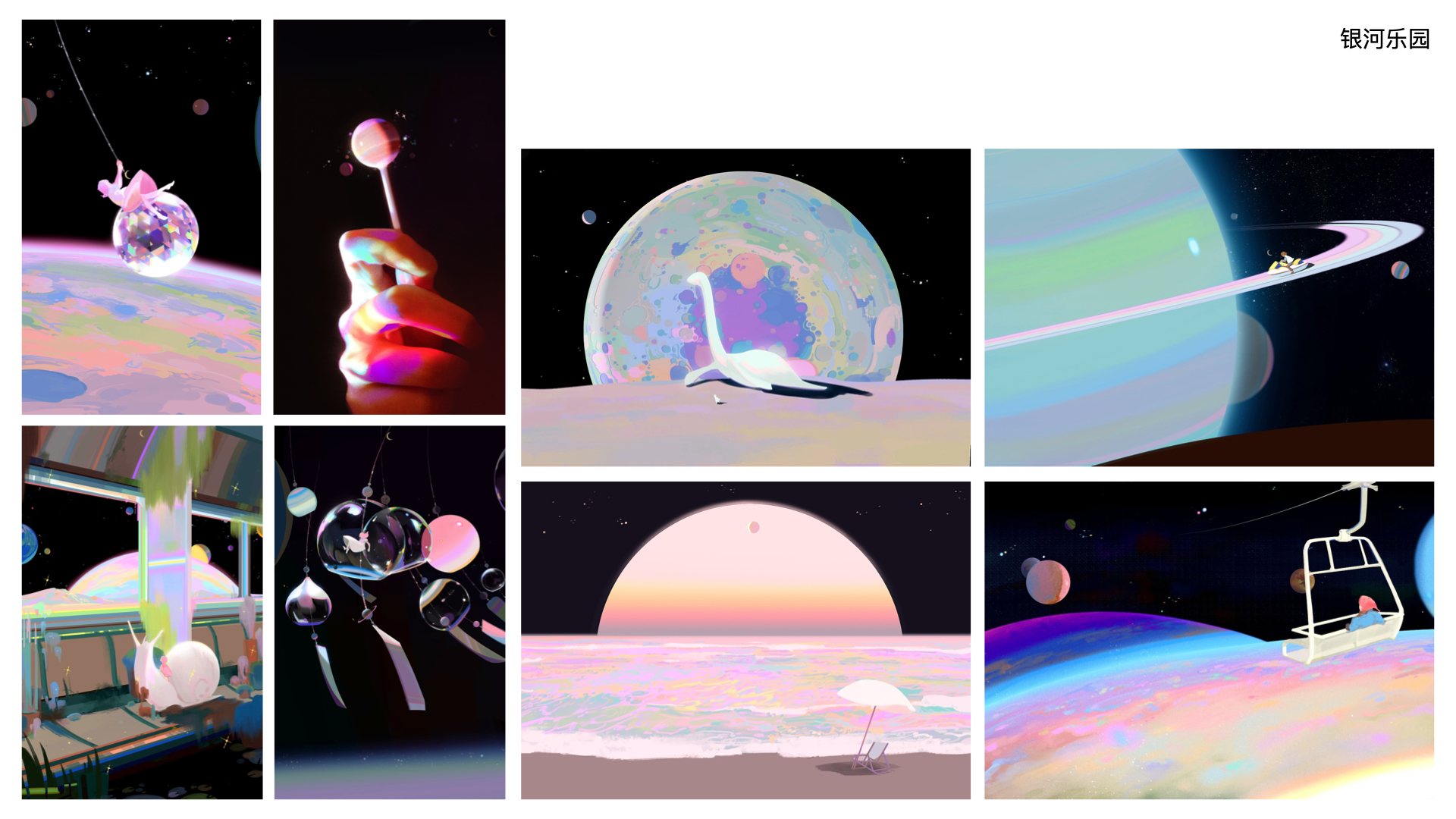 银河乐园时期,插画师患有躁郁症但想要走出来,整体上画面是偏向于更加乐观向上的力量。