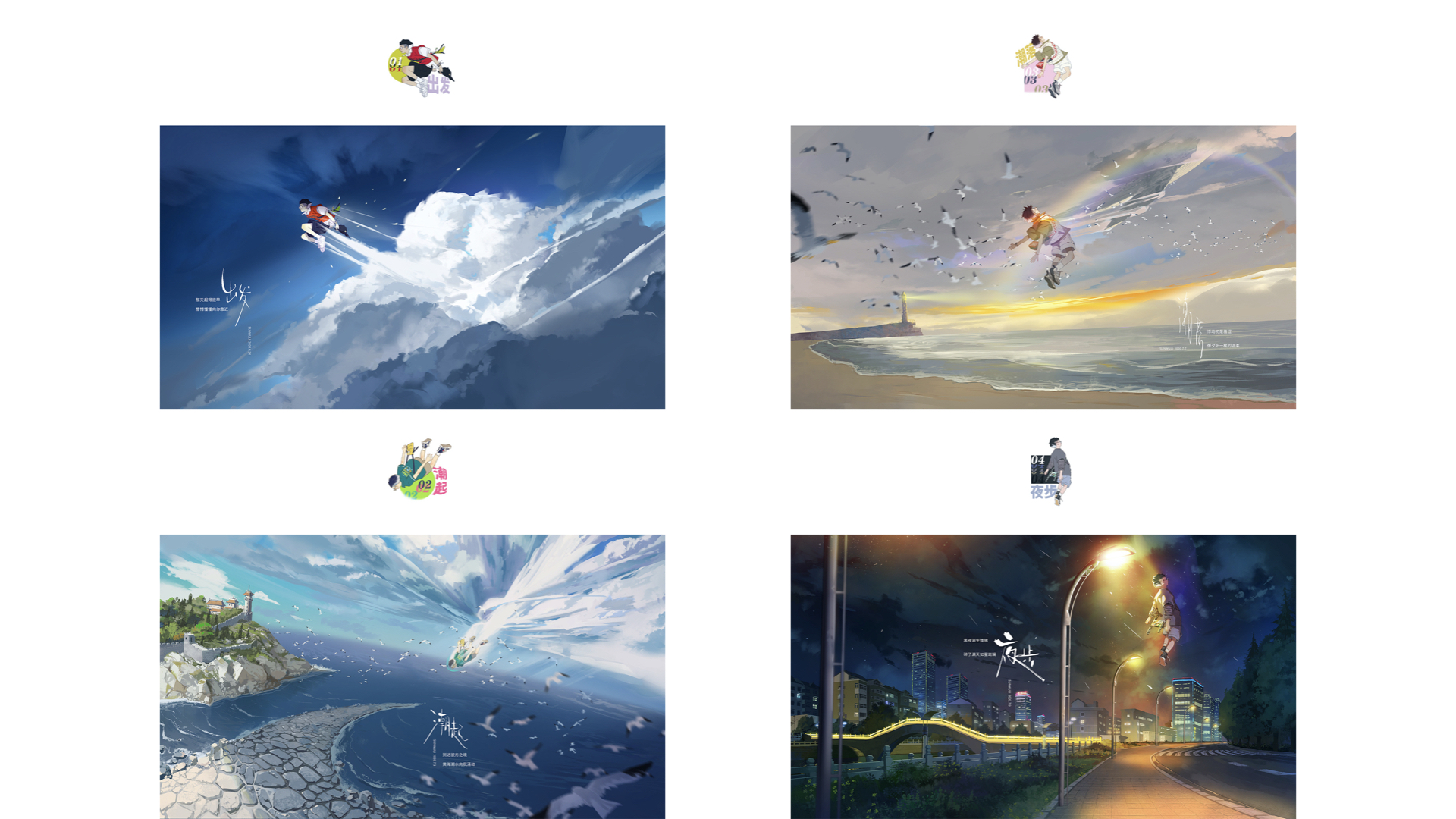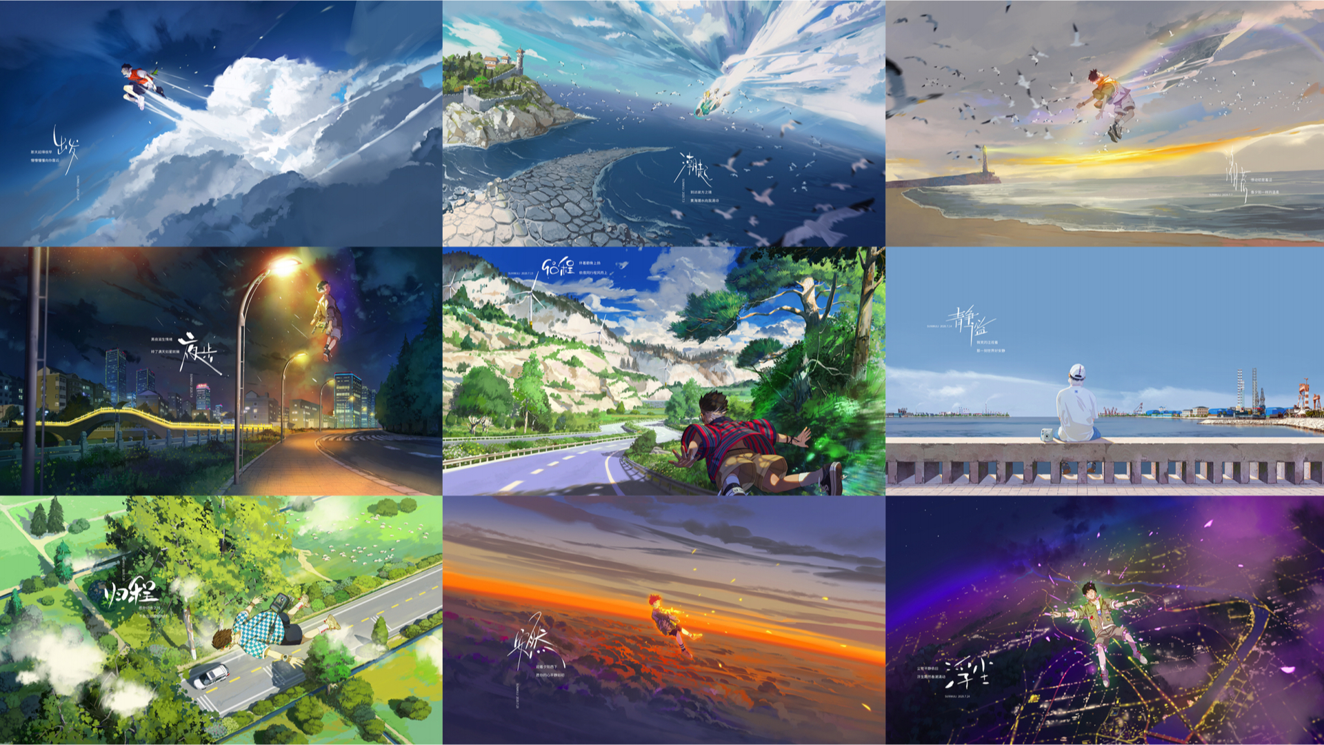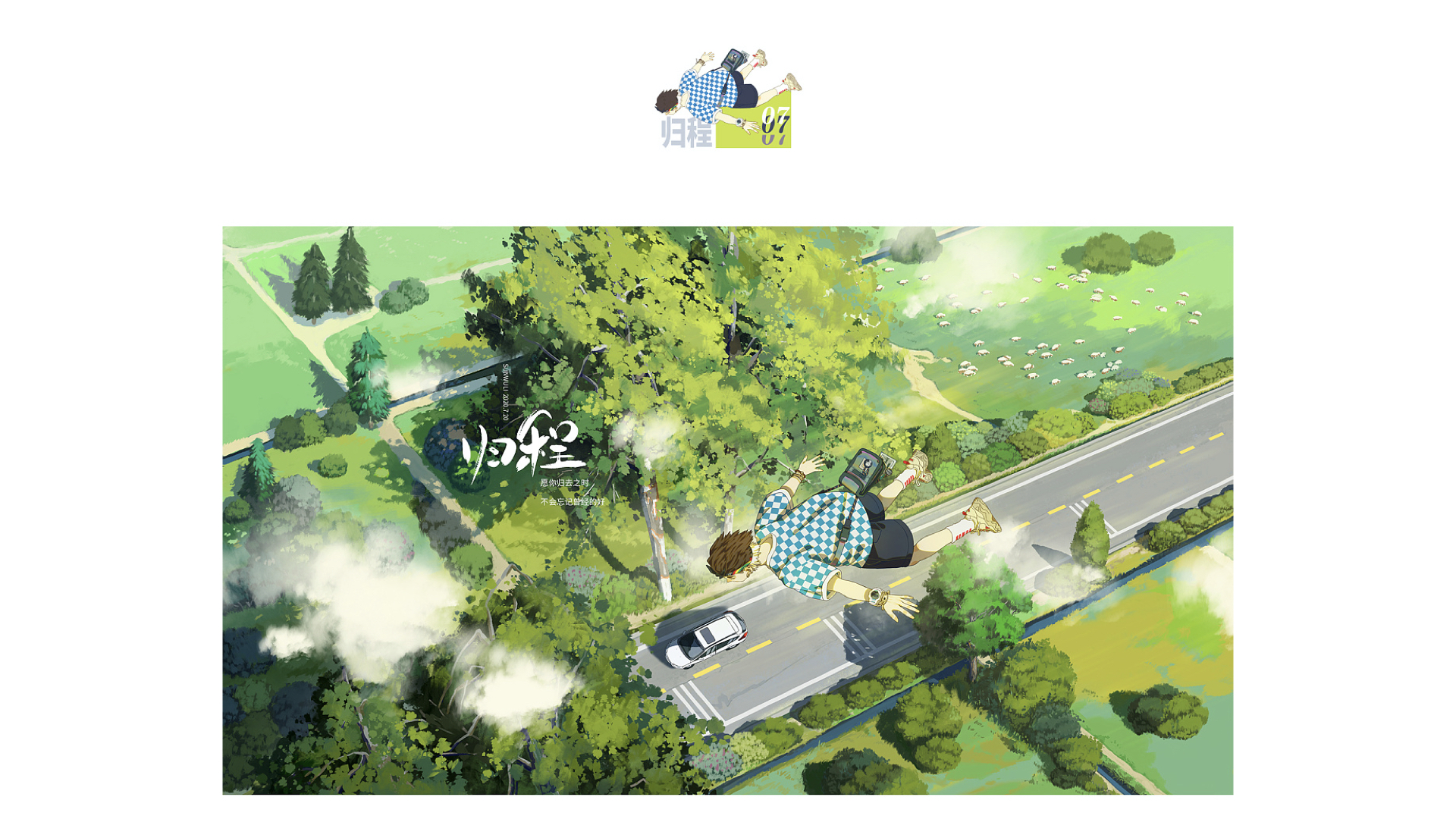 旅程这一张,人贴着地面在飞行,对应到当时是自驾去爬山,而画面是将人进行浪漫化地飞行。