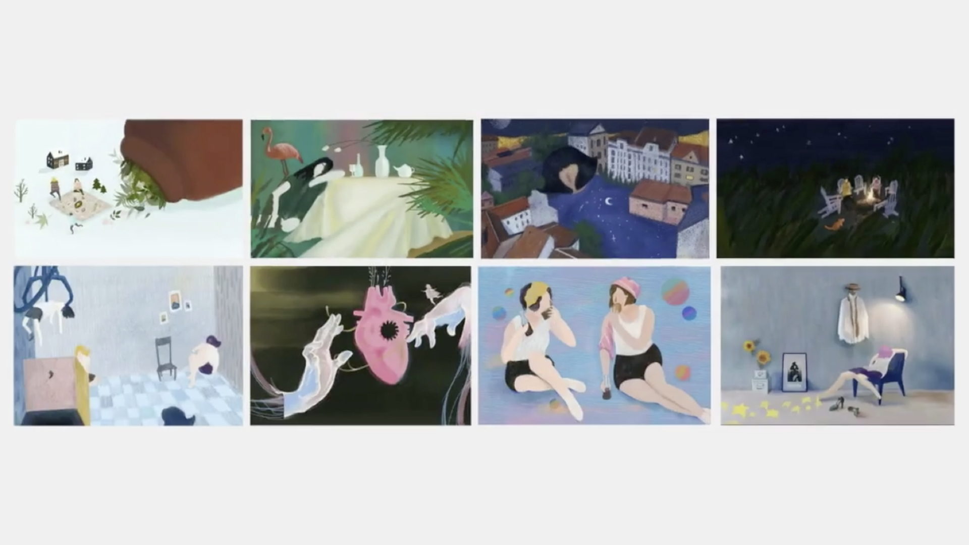 观察这些作品的细节,插画师为画面添加的故事感,用的其实都是并不复杂的元素与手法。但这种想象力的练习与培养,对插画师而言必不可少。