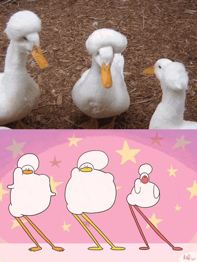 他的灵感基本上来自自己喜欢的游戏,在创作和发表了大量动画后,Keke汇聚了不少人气,但真正让他为人所知的作品,当属那只跳着康康舞的肥鸽子。