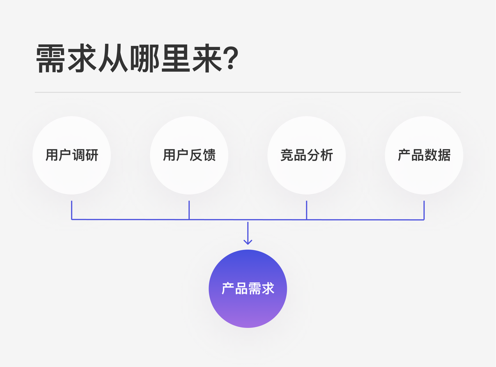 在明确了产品的方向以后,就可以根据产品的定位采集匹配的需求了,在实际项目中采集需求的方式主要是用户调研、用户反馈、竞品分析、产品数据四种方式
