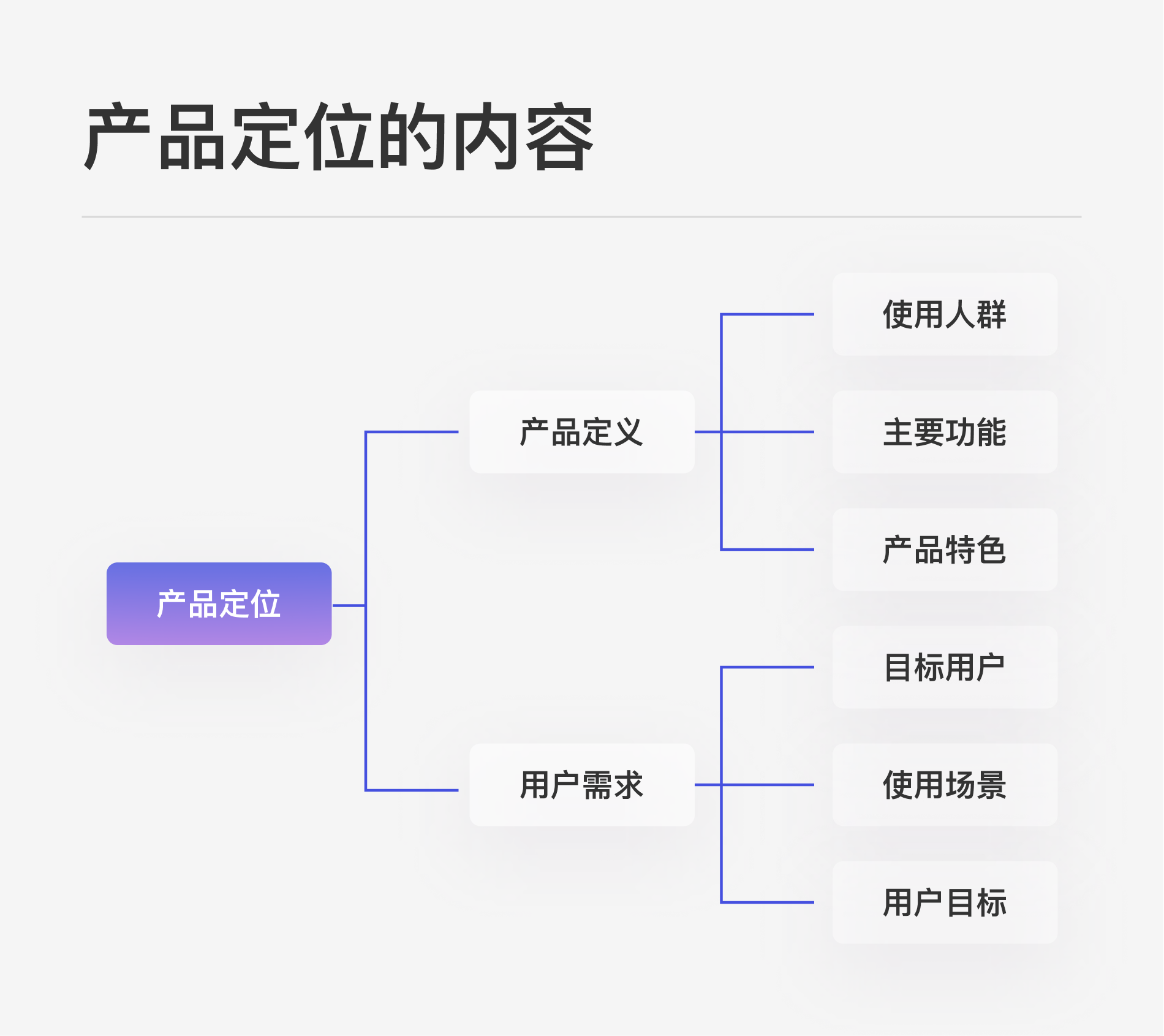 产品定位是产品设计的方向,也是需求文档和设计产出的判断标准,它包括两部分:产品定义和用户需求。产品定义主要是产品经理从系统的角度考虑,用户需求需要设计师从用户角度考虑