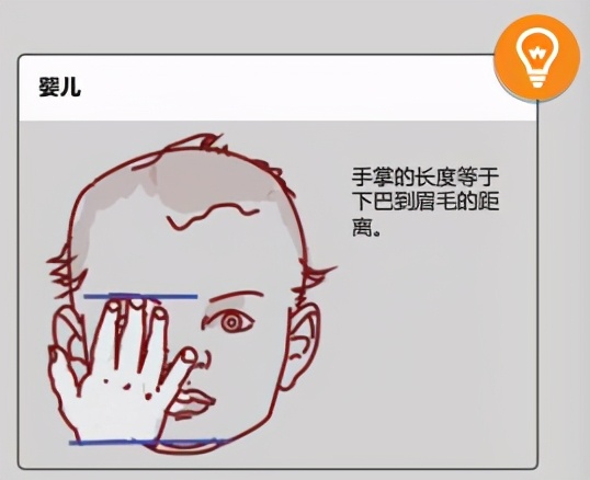画比较幼的孩子,则约等于下巴到眉毛的距离(二庭)