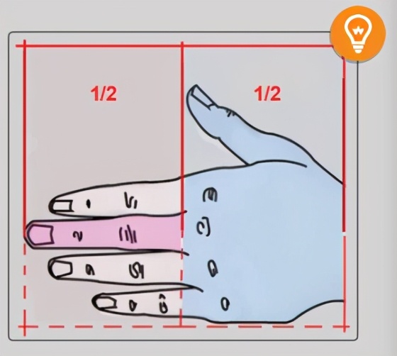 因为掌心呈五边形,在作画时画出五边形,便可按1:1比例推出手掌对应手指的长度,手指里面的比例