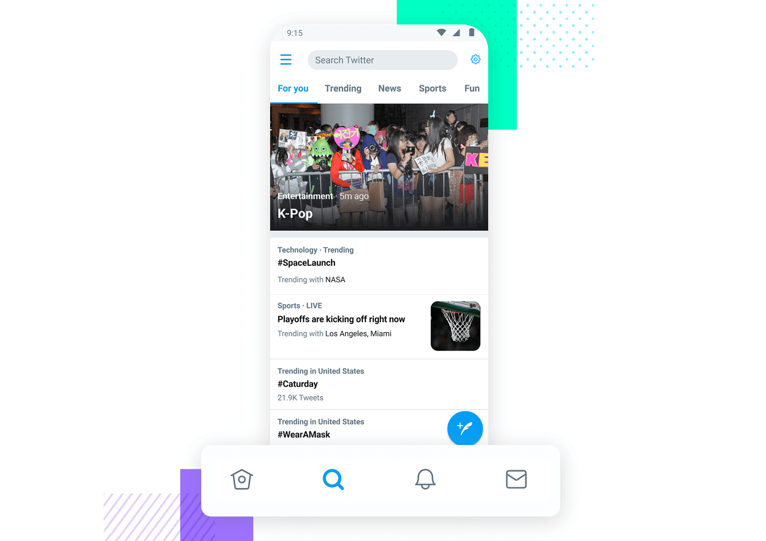 ▲ Twitter将导航重点放在底部栏上,涵盖了整个平台中四个主要的方面。