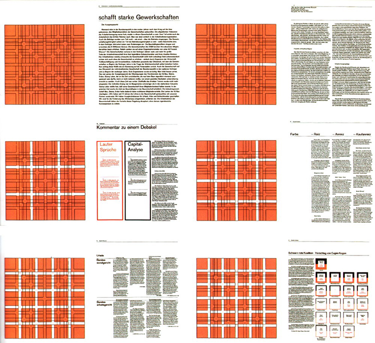 格斯特纳希望杂志在“必要的阅读性”和“自由布局”之间取得最佳的平衡,所以研究出了这个网格系统,用于这本杂志。