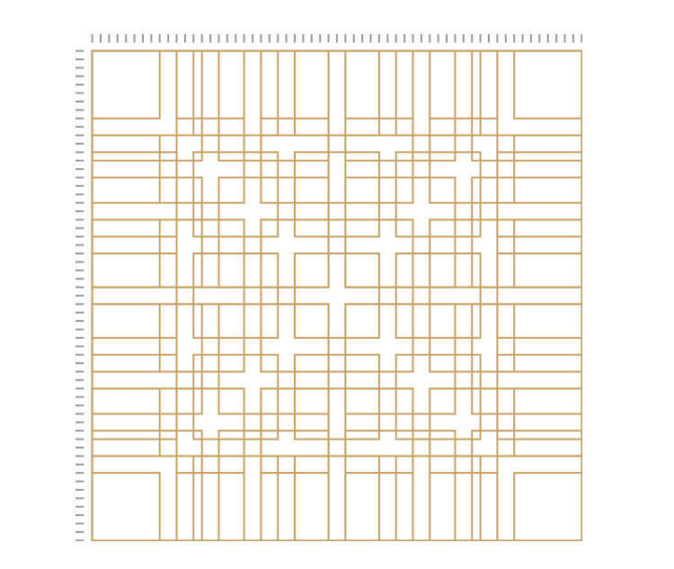 这个网格系统虽然看起来很复杂,但实际上很简单。就是一个正方形,又分成58行和58列(58x58),然后分为2x2、3x3、4x4、5x5和6x6,最后重叠起来。