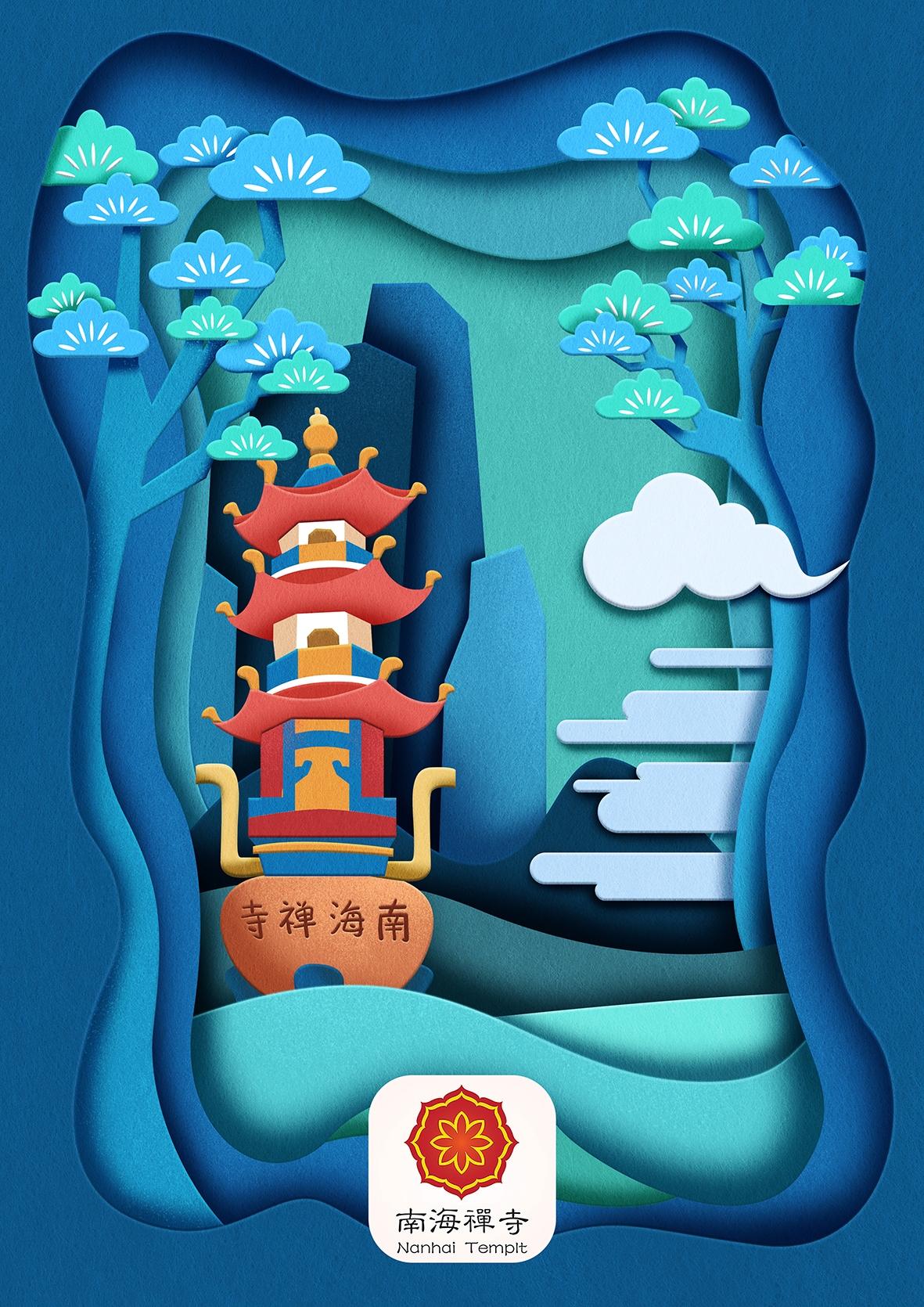 南海禅寺景区位于中国河南省驻马店市汝南县,是国家级AAAA级景区。笔者通过调研,发现南海禅寺景区文创产品的设计相对落后,视觉形象不突出等问题。本项目希望通过南海禅寺景区文创产品的设计,提升景区文创产品的美感,在项目设计中挖掘景区背后的历史文化,赋予插画作品和文创产品一定的文化内涵,提升景区文创产品的影响力,进一步宣传南海禅寺景区。项目设计中通过Adobe Photoshop软件绘制的方法,设计一套具有当地文化底蕴的标志、图案的草稿,然后选取金丝彩砂画、剪纸插画的风格进行插画的绘制,将当地的民俗特色和悠久的历史文化融入到插画中。整套设计采用中国传统画风,线条柔和,色彩鲜艳,展示了南海禅寺特色文化。最后将插画应用到文创产品设计中,制作一系列文创产品,希望本项目设计产品能够通过展示和销售,提升南海禅寺景区的知名度。