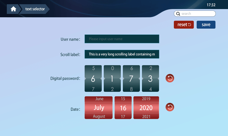 近期工作内容整理,两套面向海外市场的新产品液晶显示模组控件演示Demo,罗列各项控件及控件功能展示。