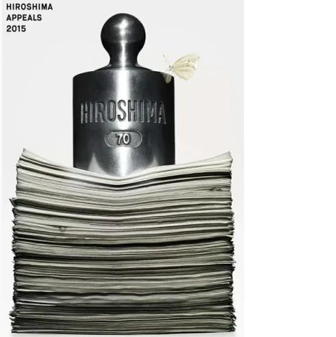 这幅海报作品的主题叫做“理由的砝码”。内容主要讲的是广岛诉求,也就是被投下原子弹的广岛。海报主体是一个巨大的砝码,上面刻着“广岛70”象征着广岛事件70周年,下面压着世界各国想要挑起战争的理由。战争,是由不同国家的不同理由互相冲击之下所产生的。但是不管是什么理由,总有绝对不应该做的事情。希望广岛的经验能长久成为镇住世界的砝码,并且应当每年都要增加重量,这张海报,也就是怀抱着这样的想法来设计的。如果你细心观察,还会发现在砝码上还落着一只蝴蝶。