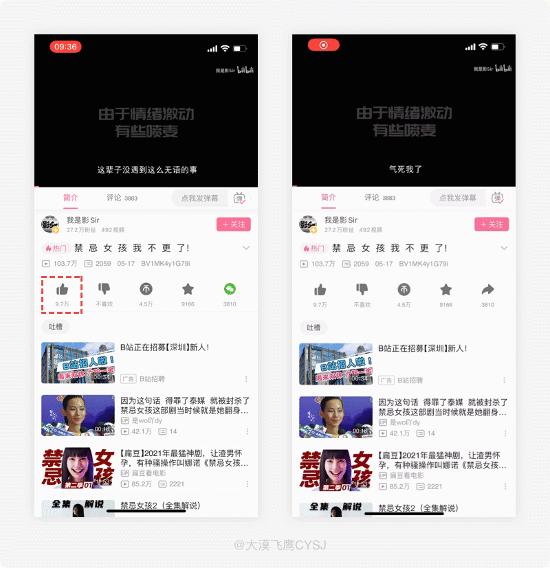 (PS:一键三连也一度被称为“素质三连”,如果用户对该视频较喜欢,单独操作三次会增加操作成本,完成度则会大打折扣,一键三连则会简单很多,反正喜欢,何不一次性“释放”到底?其中不乏一些感情用事、为了纯粹好玩的用户会跟风一键三连。流氓行为......)