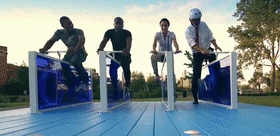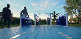这个装置需要体验者踩动踏板,共同进行音乐创作。“合奏”体验由四辆自行车组成,每辆自行车都是歌曲中的一件乐器,踩动一辆自行车只会奏响单个音效,四人同时踩踏自行车将能够完成一首完整的歌曲,并触发灯光效果。