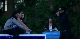 互动方式:四辆自行车连接四种不同的乐器音轨,分别触发架子鼓、贝斯、吉他和人声四种音效。
