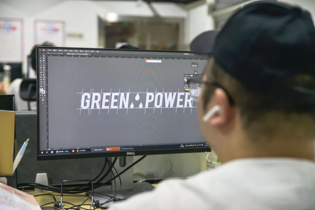 在LOGO设计上,我们使用了「GREEN POWER」作为标志的主体,表现出绿革在环保行业贡献的力量和决心。其次我们在标志中央设计了三点水滴的图形,更强化了绿革的环保行业属性和以及品牌的识别性和独特性。
