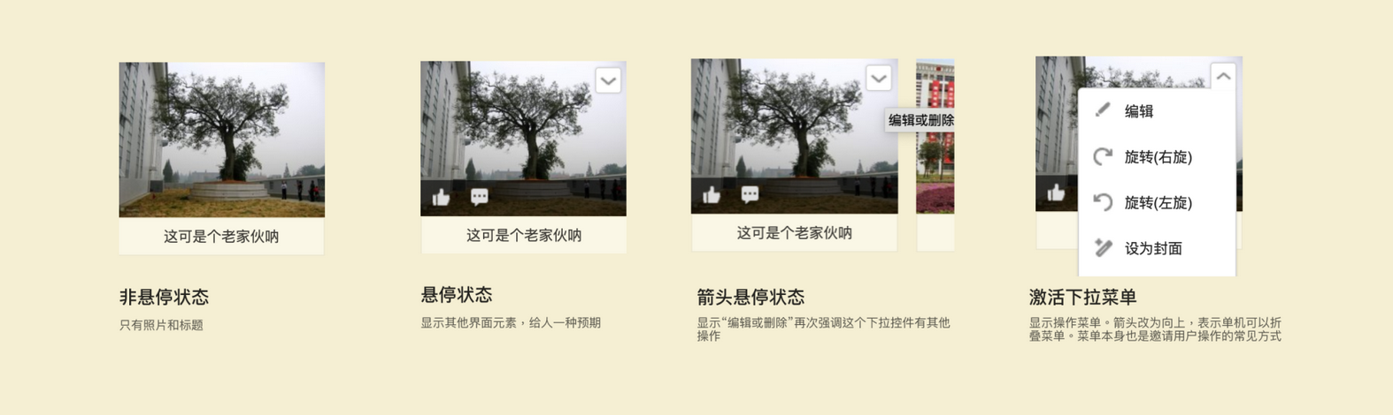 当操作不如内容重要,而且希望界面整洁时,使用悬停邀请;