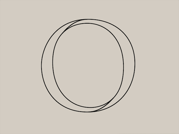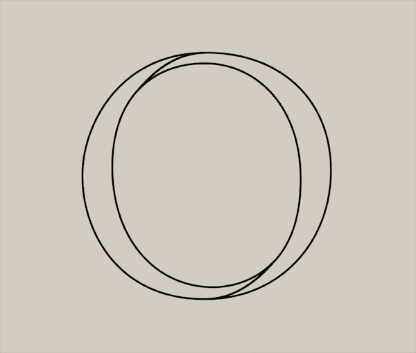比如说字母O,它就是用平头笔以两笔写成的。不同的笔头角度会导致笔画最细的地方,也就是起笔和落笔的位置有所差异,比如说,当笔头角度变为90度时,可能最细的地方就在中间了,只不过基本见不到在这个位置起笔的字体罢了。