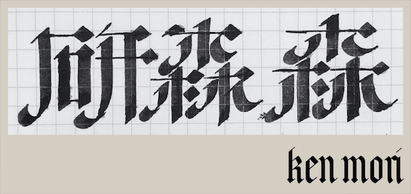 比如说根据哥特体的一些笔画特征,和汉字的基本结构,我们就可以得到类似于图中这种风格独特的字型。下面,我们也可以根据这种感觉来做一下尝试。
