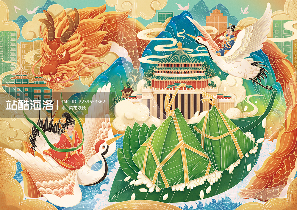 插画师也不拘泥画风,通过天马行空的想象力与绮丽的色彩,为我们绘制出了各种风格的端午插画~