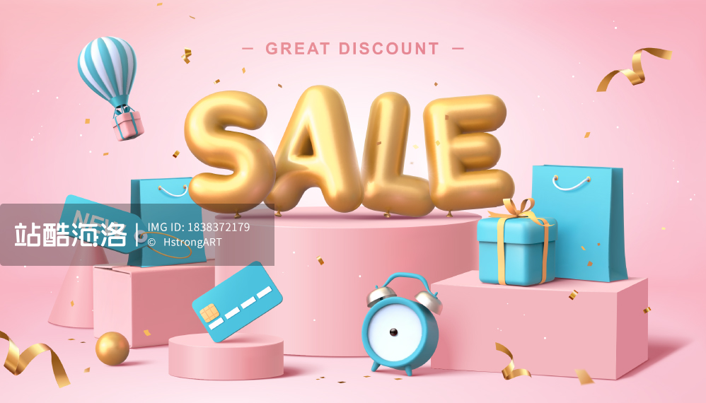 不论是装点了气球和礼包的3D展台图,还是极具张力的sale热卖图,都为商家广告的促销提供了助力。