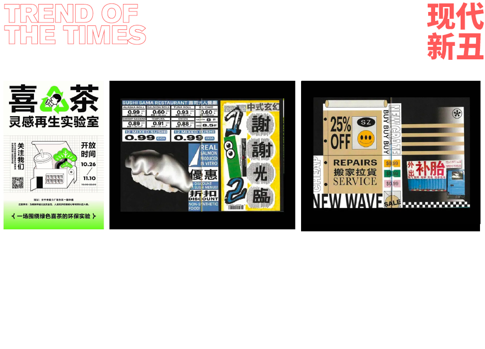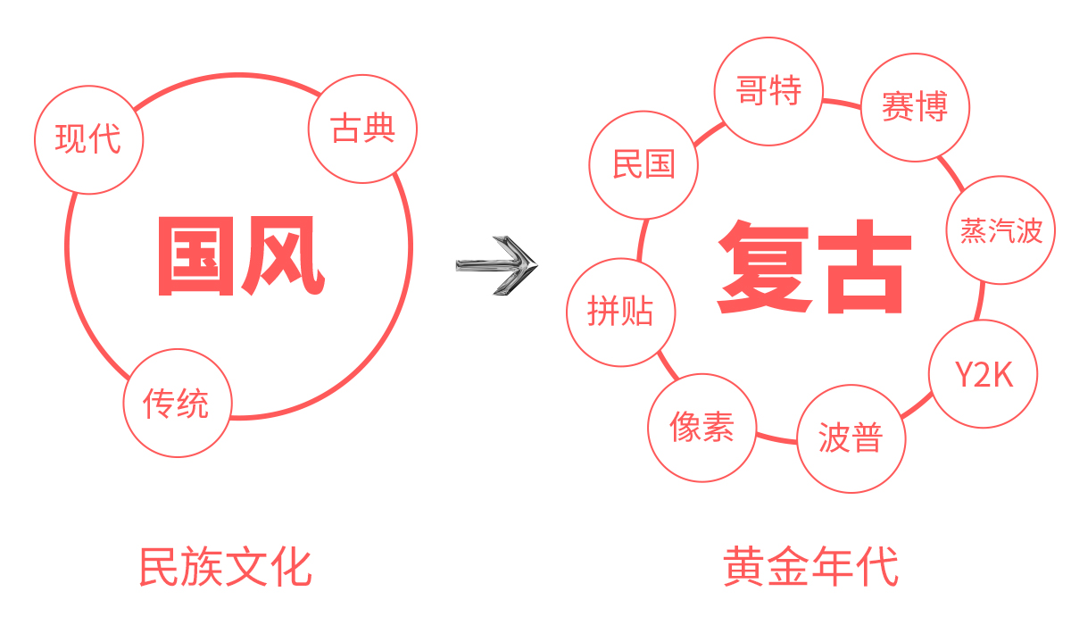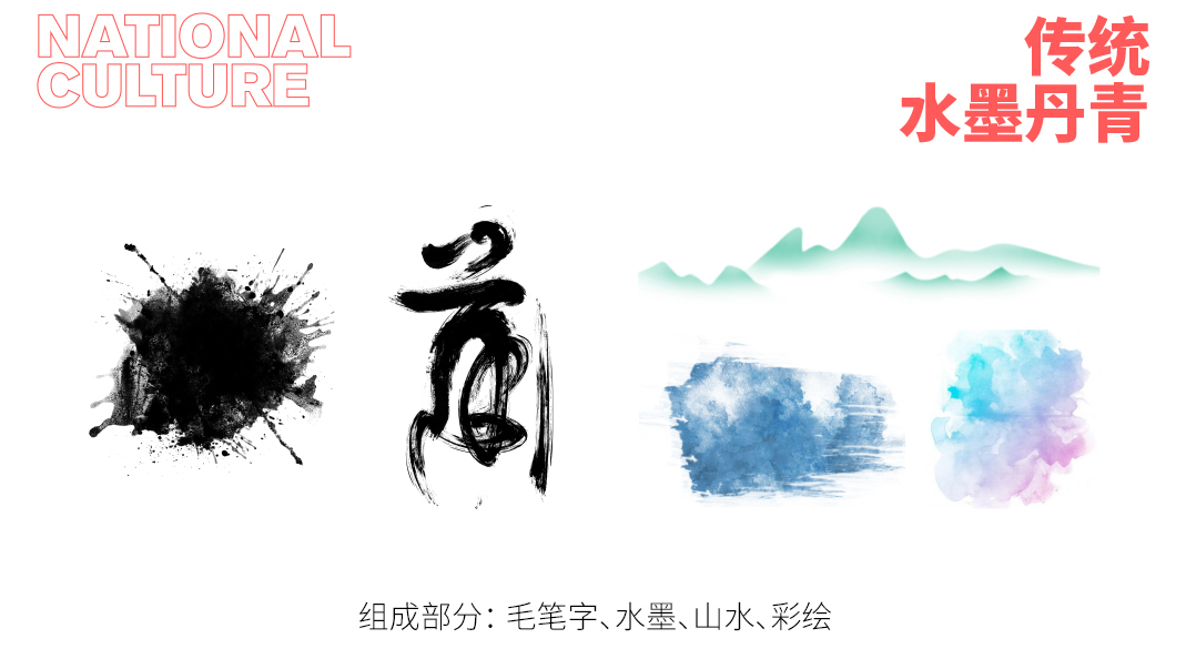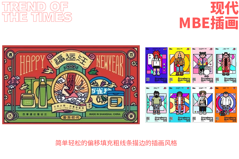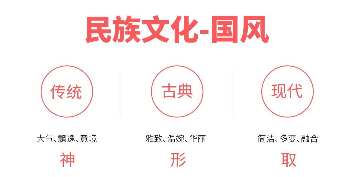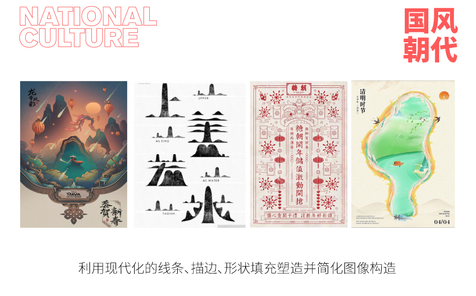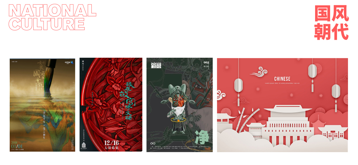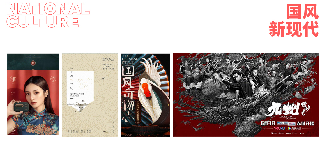 新现代是将国风其中的某单个元素放大化,表现极为现代手法,国风中商用化的最常用的风格。