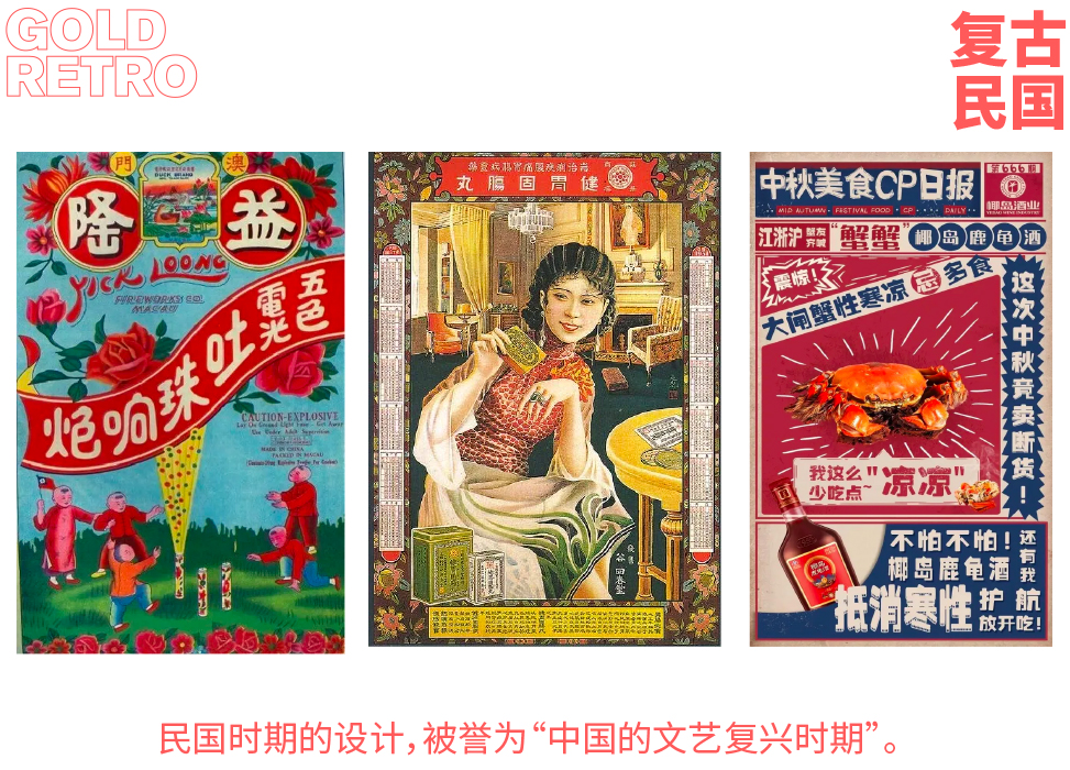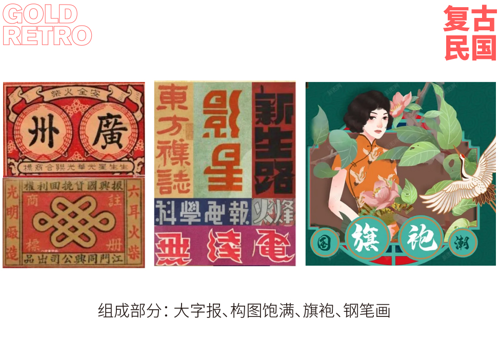 民国风格,20世纪30年代是民国设计最辉煌的时代,商业与文化剧烈碰撞,汉文化与西方文化融汇,创意、美学表现极其丰富。