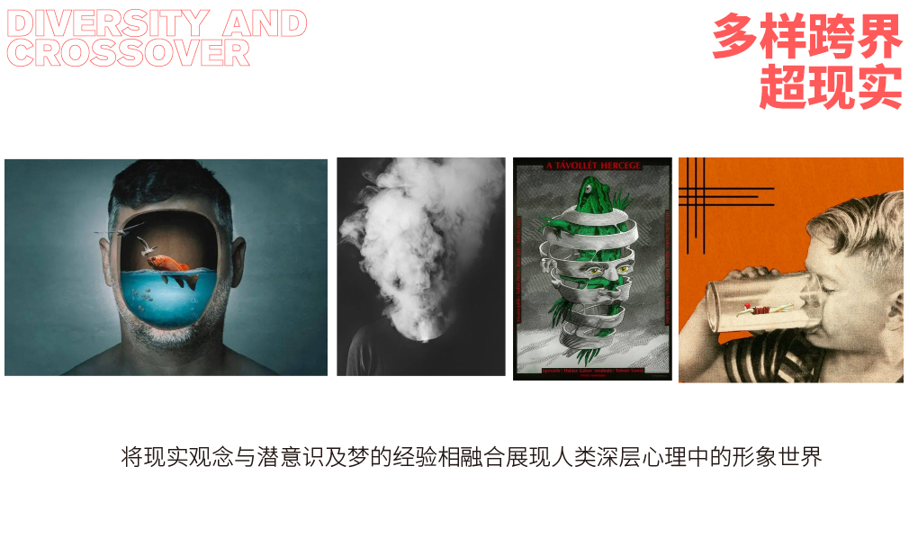 以萨尔瓦多·达利为超现实主义代表,将现实观念与潜意识及梦的经验相融合展现人类深层心理中的形象世界。
