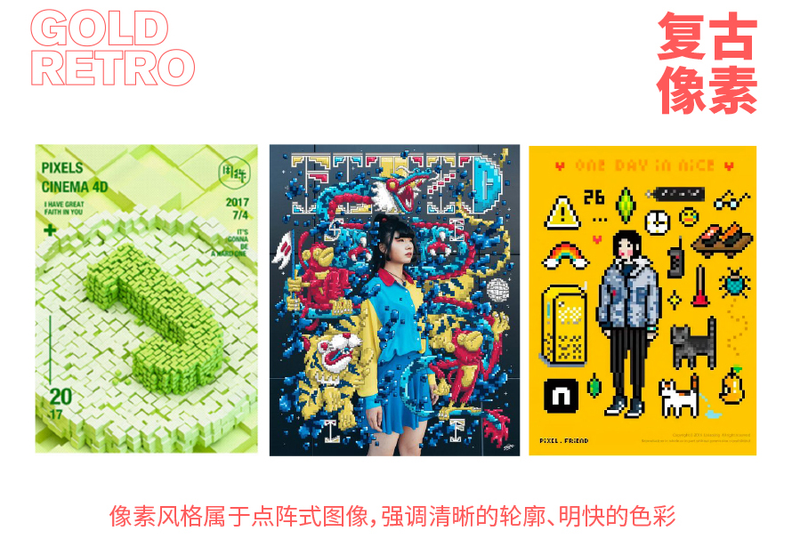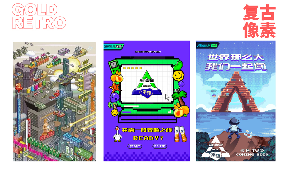 组成部分:像素化,轮廓清晰,卡通,刚结束不久的创造营综艺节目就是用的这样的风格。