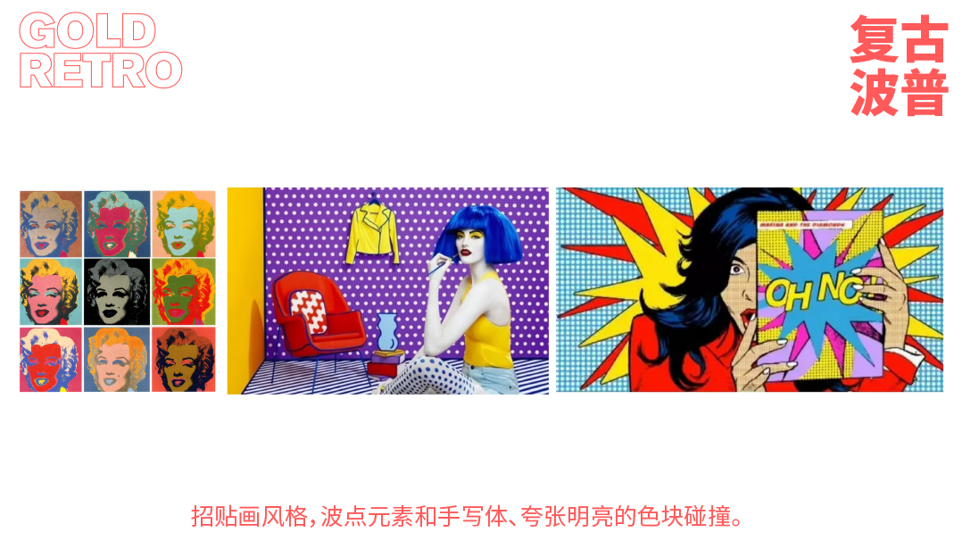 波普风格是发源于反对高端艺术和精英主义阶层的艺术运动,采用大众更容易接触的信息和画面体现,招贴画风格的一种。