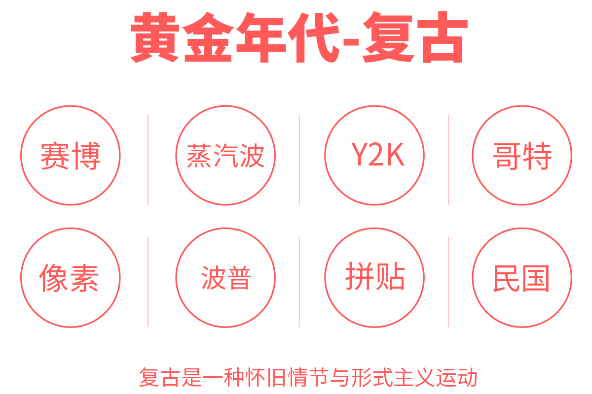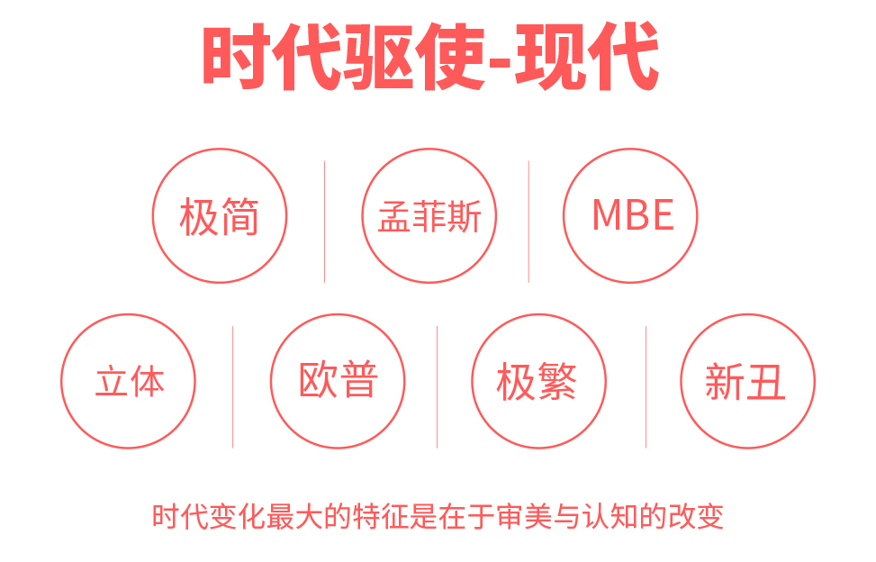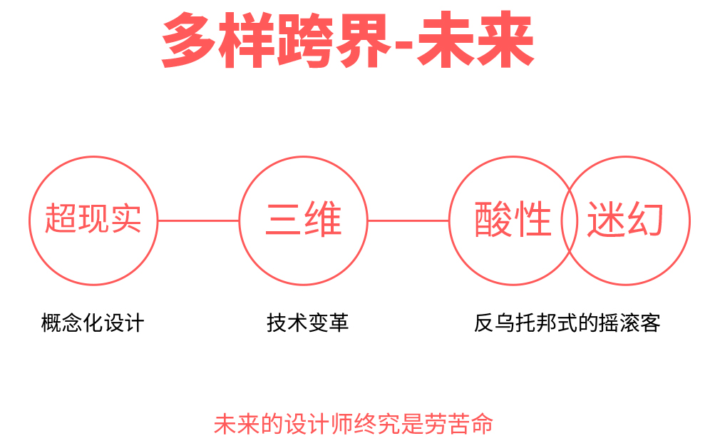 我们将所有关于潮的时代和风格特征全部讲完,目的不是讲历史和展现风格技巧,而是要明白我们需要学习的其实有很多,未来的设计一定是集风格与领域精华所长融合下的就是潮的设计。