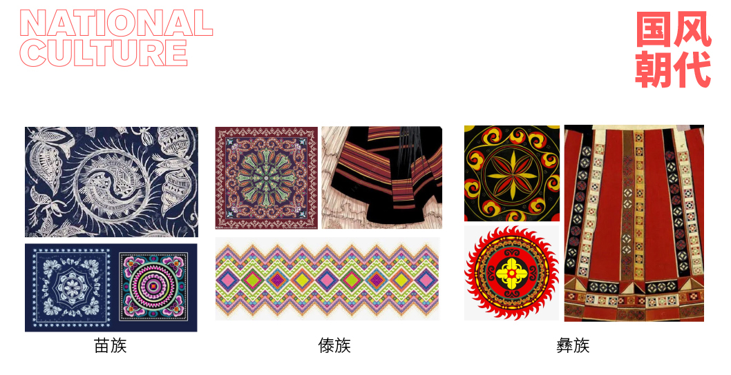 除了朝代其实还有各民族的文化都可以为我们的设计吸收出更好的创意来源,而这些图案的设计大部分都是来自于他们的民族象征的图腾、服饰图案、头冠花纹等等,比如之前花西子就有一款产品就是用的民族的文化去设计的,就非常有特征性。