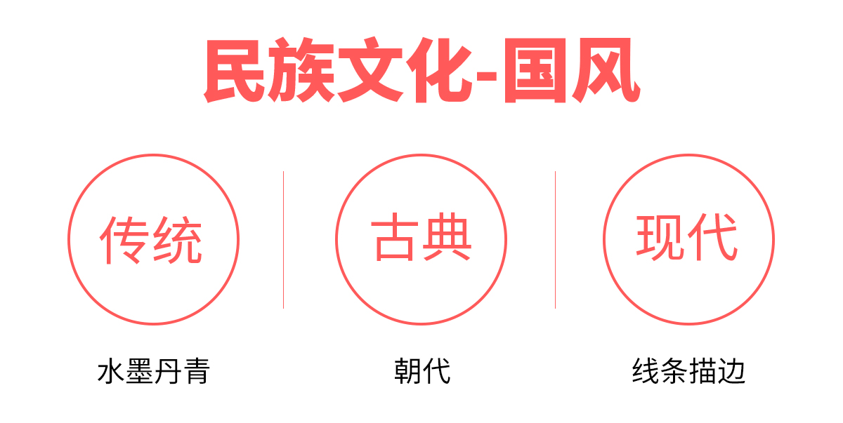 其实国风不仅仅是我们中国人对本国民族文化的一种解释,每个国家都有着自己的国风,比如希腊文化、罗马文化、玛雅文化等等。国风我们分为传统、古典、现代。传统对应的是水墨丹青类型,古典对应的是中国历代的朝代与民俗类文化,现代对应的是线条描边和色块涂抹等方式的画面展现。