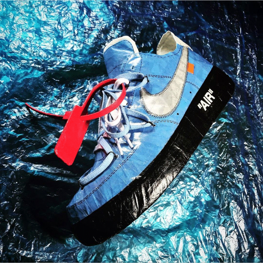 从鞋子的外观中我们也能看到,这样的创作需要经过诸多考量。首先鞋子的形状需要加工固化,等待成型后还需要依据鞋子原样制作进行细致的切割、粘贴。
