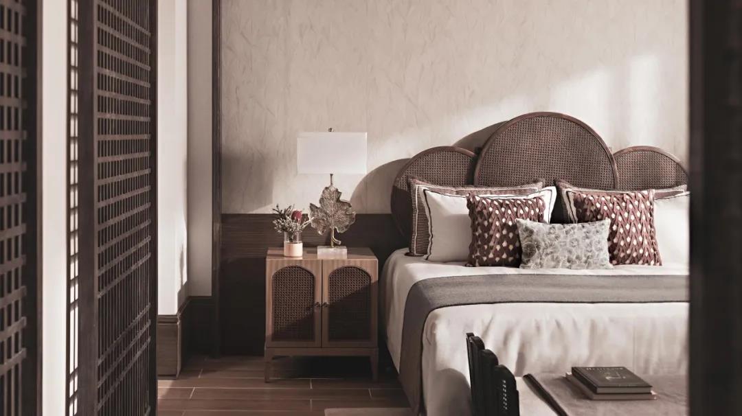 棕榈叶缠绕而成的床头,让其中的人们心情变得感性而活泼。追求原汁原味,清雅、休闲又充满禅味的生活情趣触手可及。