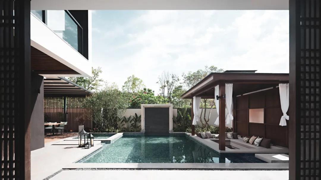 波光粼粼的泳池营造灵动的景观,带给视觉不同的感受,满足主人对高品质生活的追求,可随时享受无比惬意的休闲度假时光。