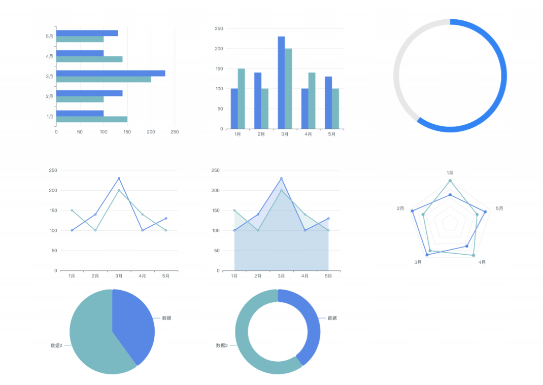 比如,8 款常用百搭的图表组件,覆盖了后台产品绝大部分的使用需求,告别手动绘制,效率up up up。