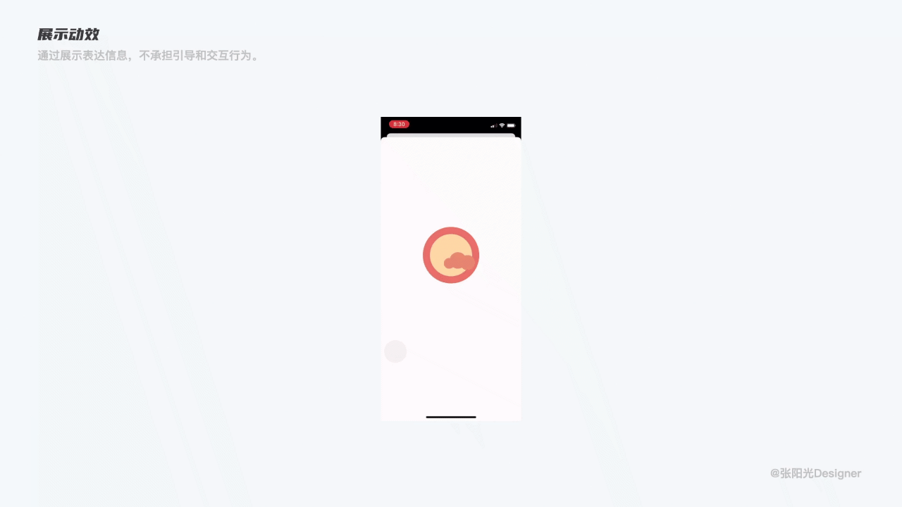展示动效作为纯展示出现的机会不是很多,通过展示表达信息,不承担引导和交互行为,比如天气情感化动效展示。