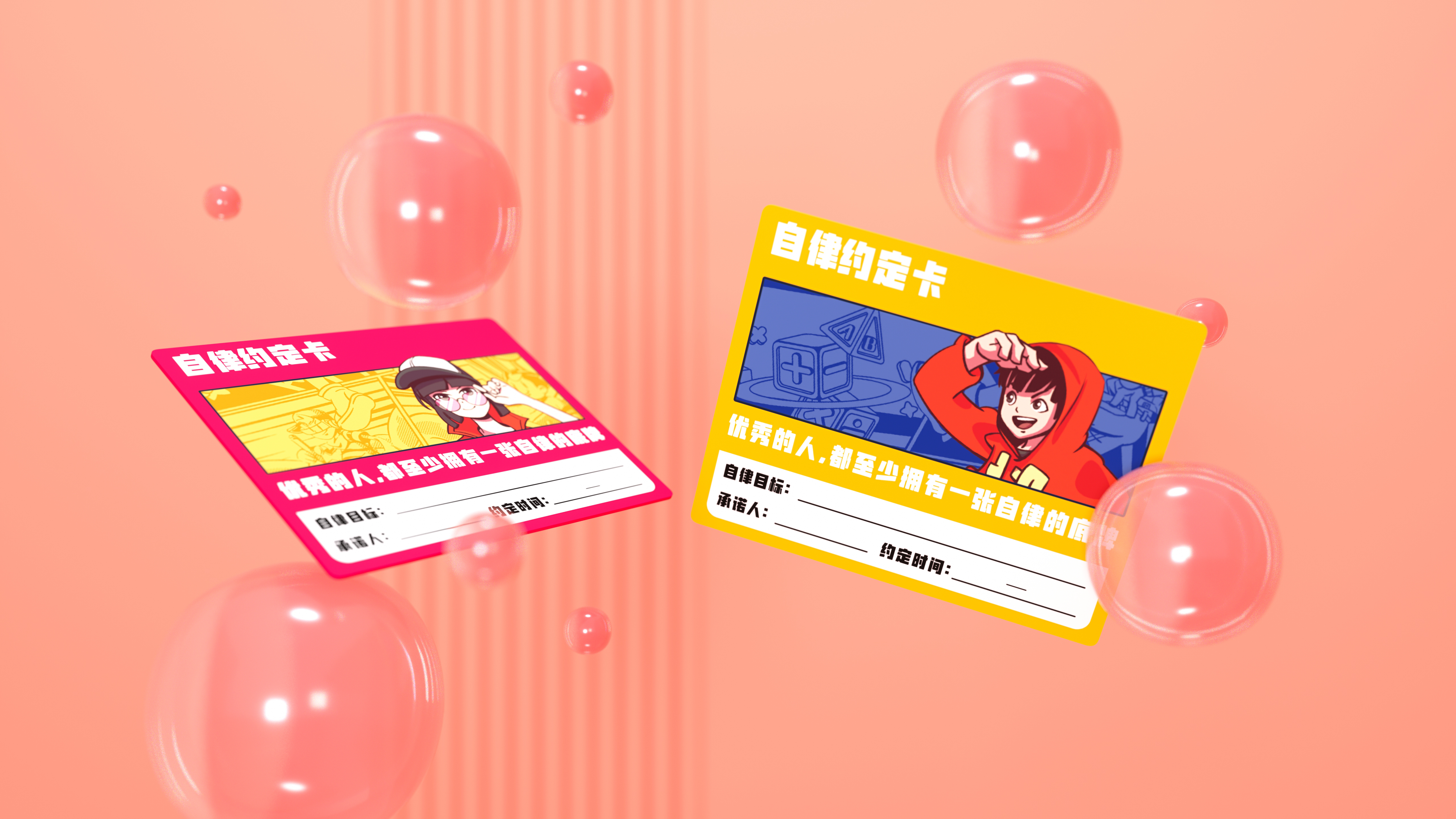 自律卡选用300g白卡,书写手感好;彩色印刷,IP形象更鲜明;尺寸便携,易于交换。