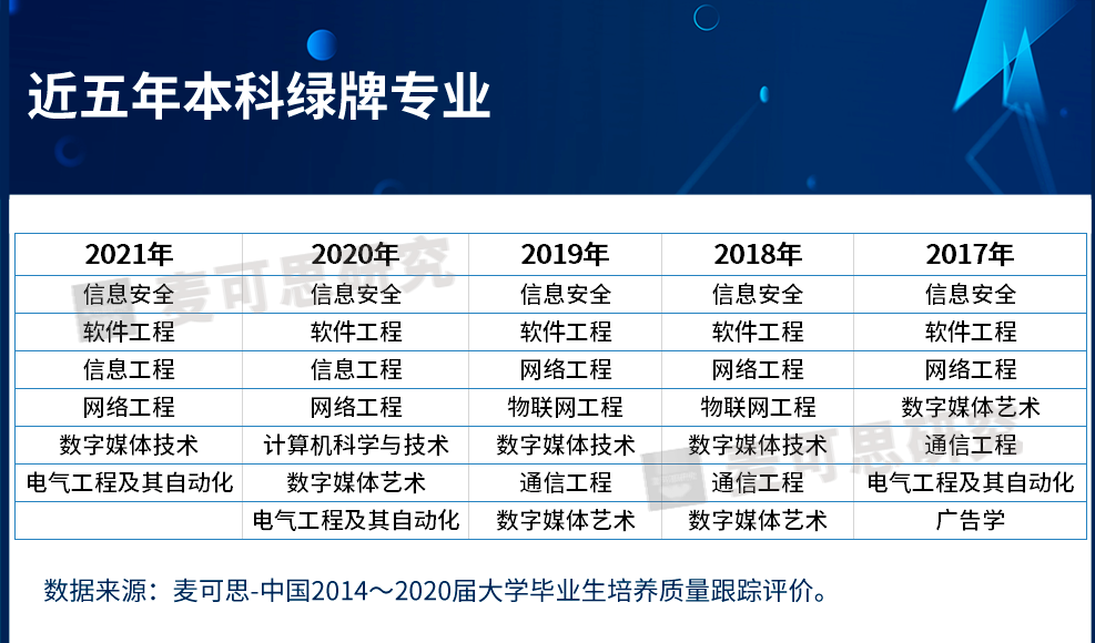 一直以来,《中国本科生就业报告》将失业量较小,就业率、薪资和就业满意度综合较高的专业称为绿牌专业,为需求增长型专业。分析发现,绿牌专业社会需求大,毕业生就业质量较高。