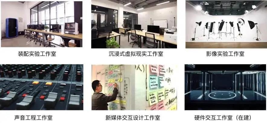 本专业现有画室2个、各类工作室6个。其中装配实验工作室、沉浸式交互实验室、影像实验工作室、声音工程工作室、新媒体交互设计工作室、硬件交互实验工作室,长期供学生开展各类实验和项目制作。