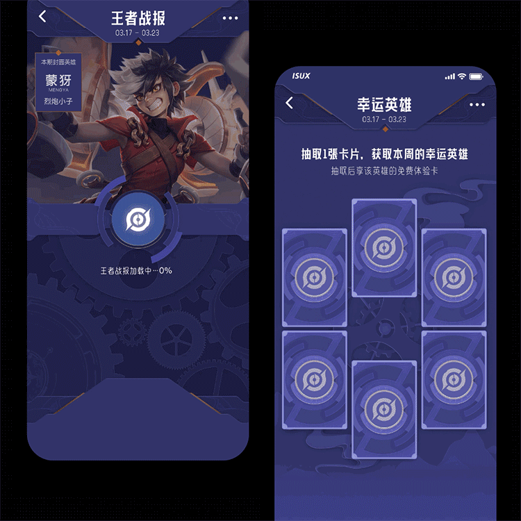 在设计时首先明确游戏世界观设计表达的延展。因为主题是王者每周的战绩报道,因此使用王者世界观中的【机关】作为核心,完成机关书的设计,并整体使用机关质感及硬朗的字体,使战绩看起来更加具有权威性。并根据游戏配色制定风格样板。