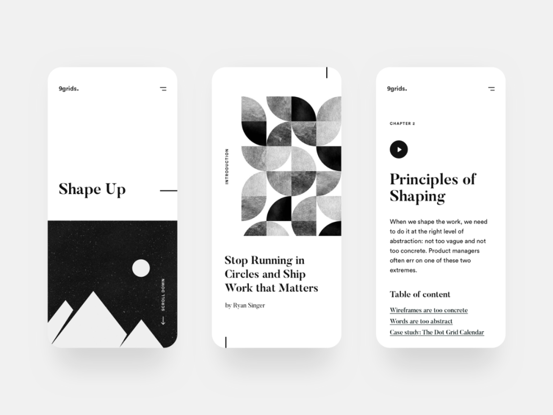 极简主义风格, 充分突出内容重点,去装饰化设计,让设计师更多的精力专注在内容传达设计以及版面创意上。