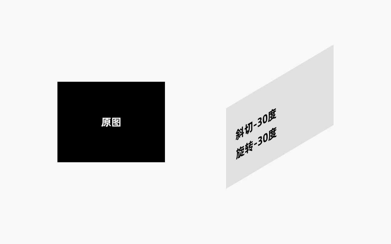 效果4:选中卡片,斜切角度改成-30度,旋转角度改成-30度。