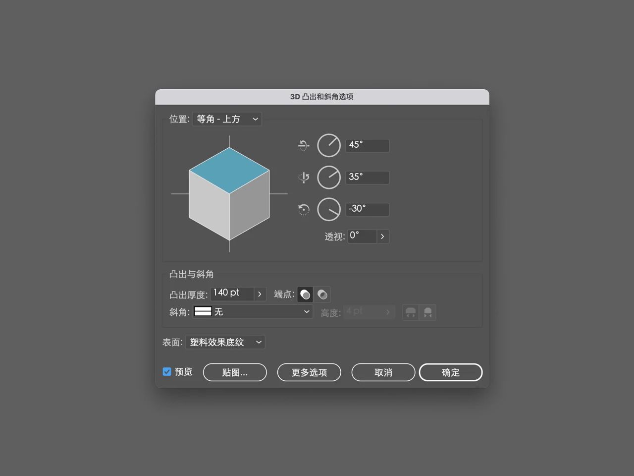 具体操作:打开Ai-画出一个正方形-点击效果-3D-凸出和斜角-等角上方。