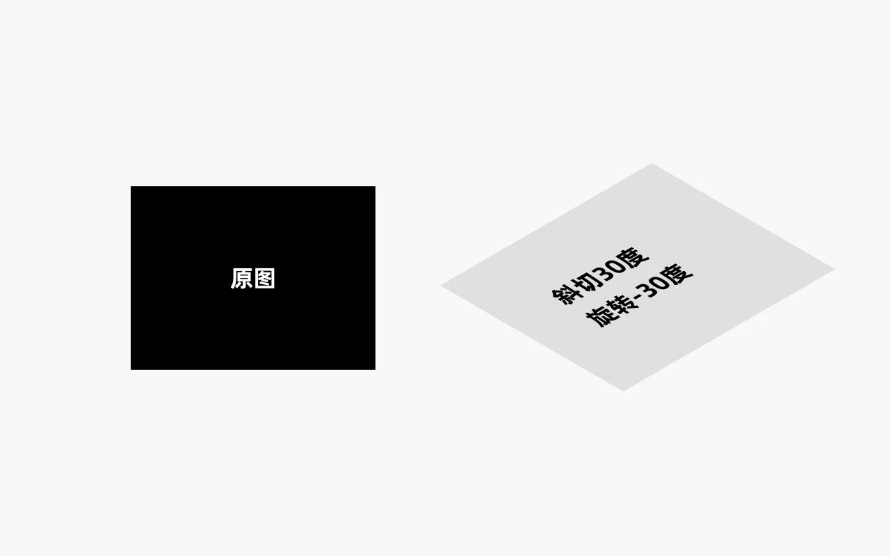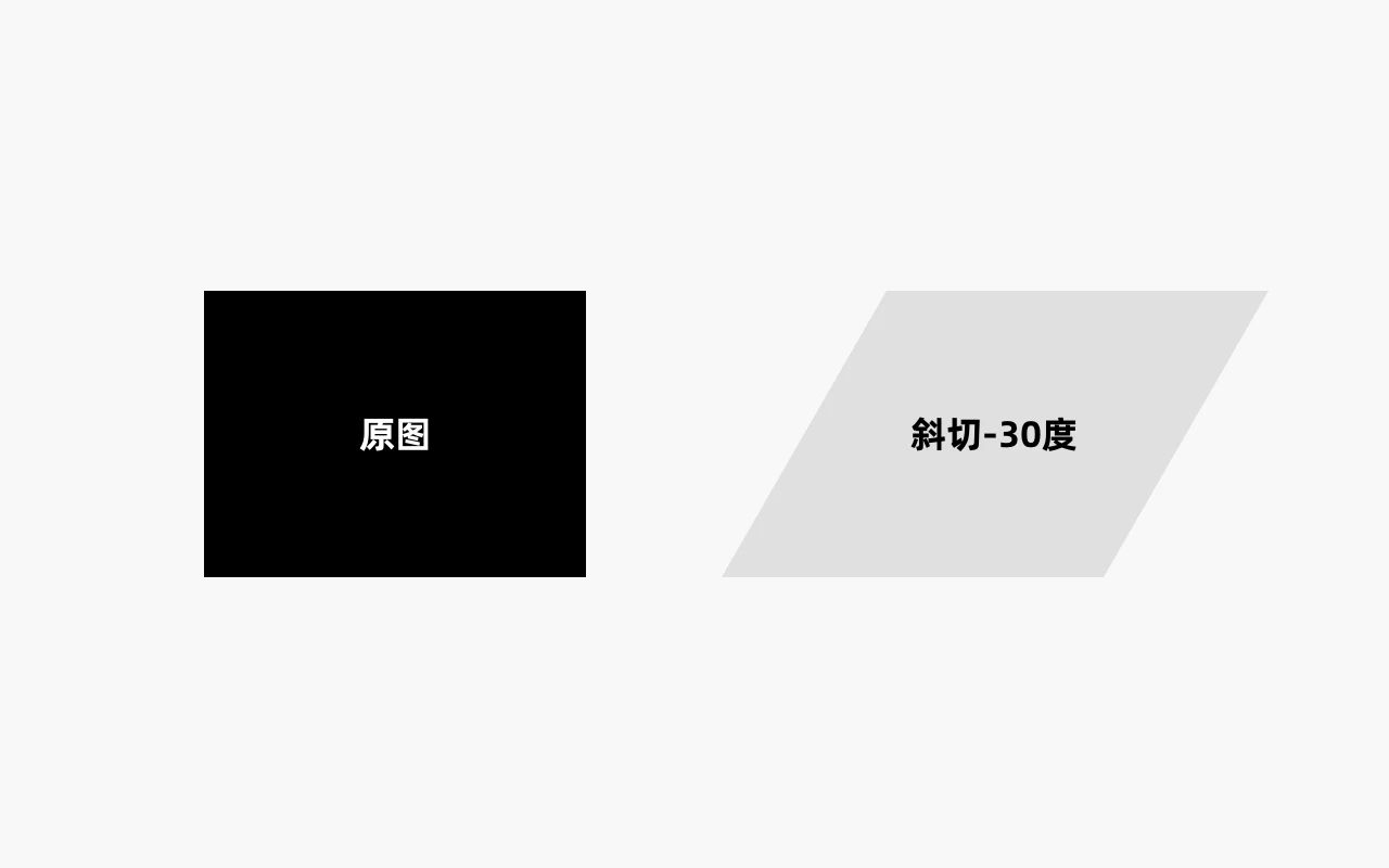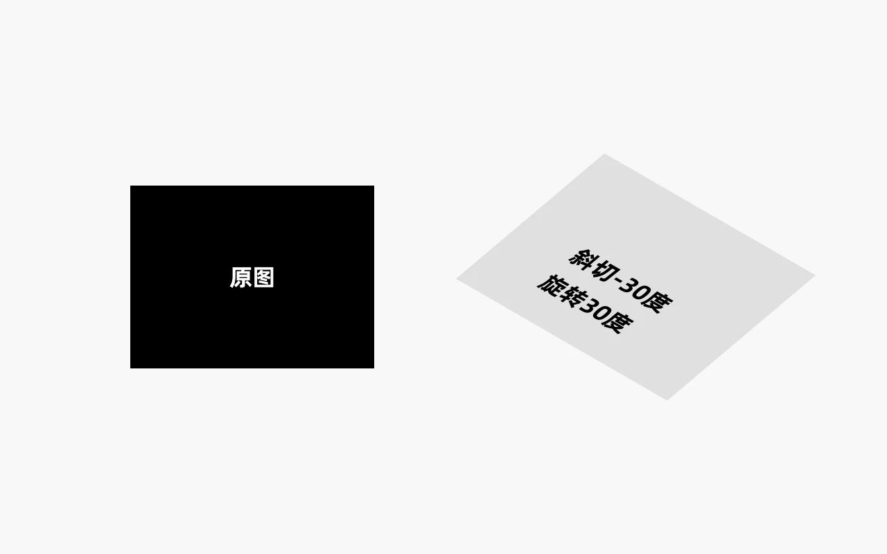 效果5:选中卡片,斜切角度改成30度,旋转角度改成-30度。