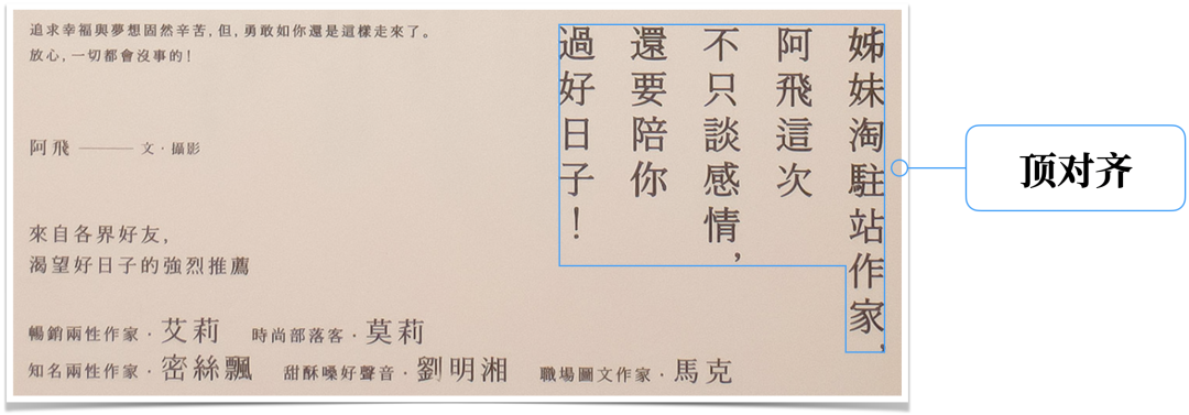 先排出顶对齐的文字,然后在其负空间处置入左对齐的文字信息。