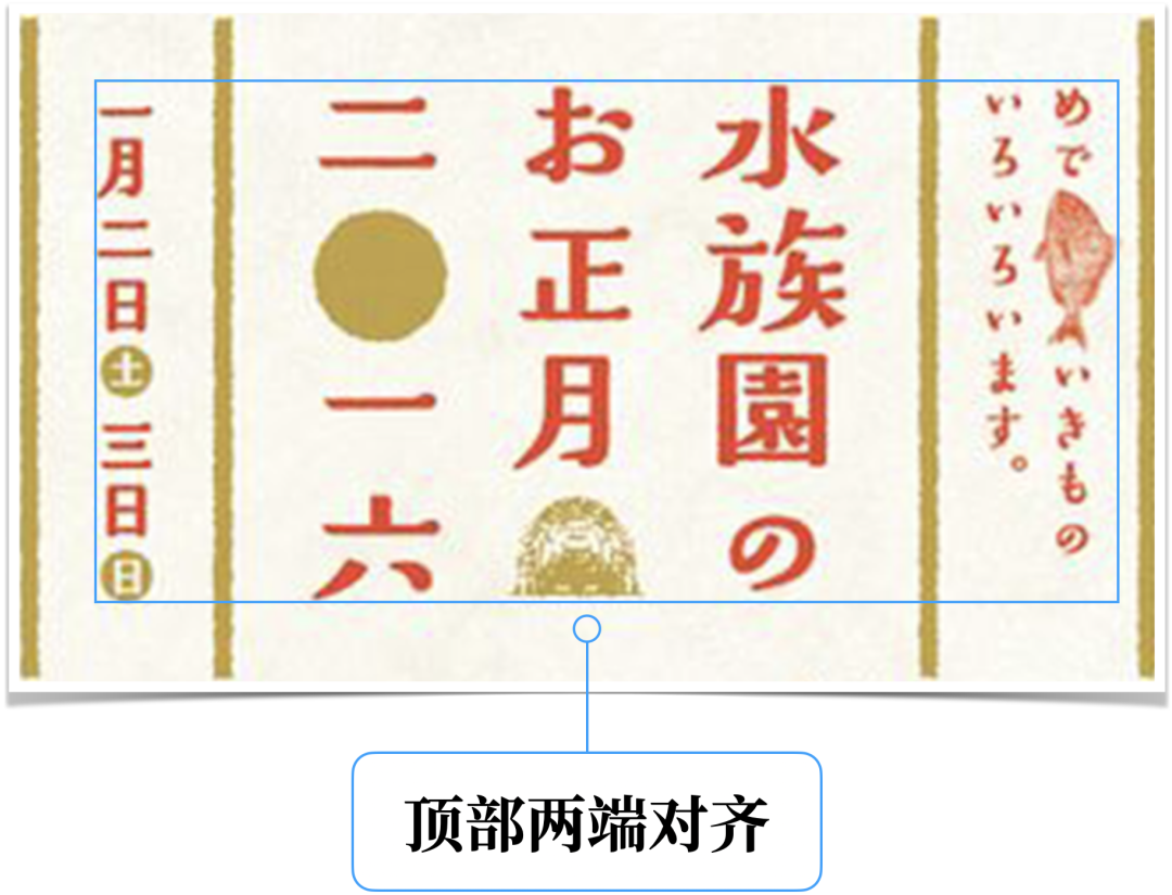 我们来看这张图,它既有顶对齐又有两端对齐的感觉,像这种组合可以将它称为顶部两端对齐。