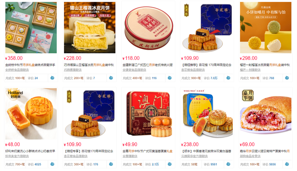 上面提到那么多的月饼种类,如果以产品销售为主要诉求,产品属性首先交代清楚:广式还是苏氏,酥皮还是冰皮,肉的还是素的,不要造成选择困扰;把月饼信息用真实的实物照片快速传递给消费者,口味主要在馅料上区别,将月饼馅料的横切面展示出来,让人一看就知道是她(他)喜欢和要寻找的月饼口味;这一点在电商头图制作上表现尤其明显。