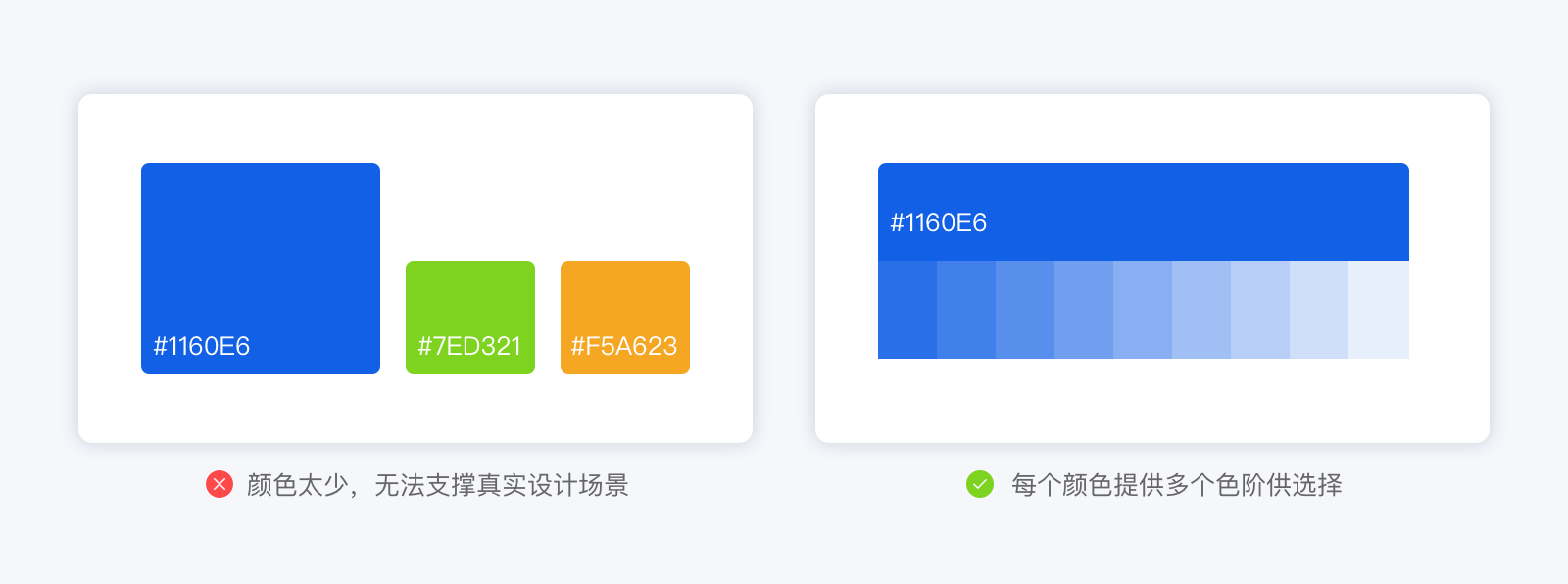 在真实的设计场景中,对色彩的复杂度要求是非常高的。色彩规范应该基本覆盖一套产品对用色的所有场景。
