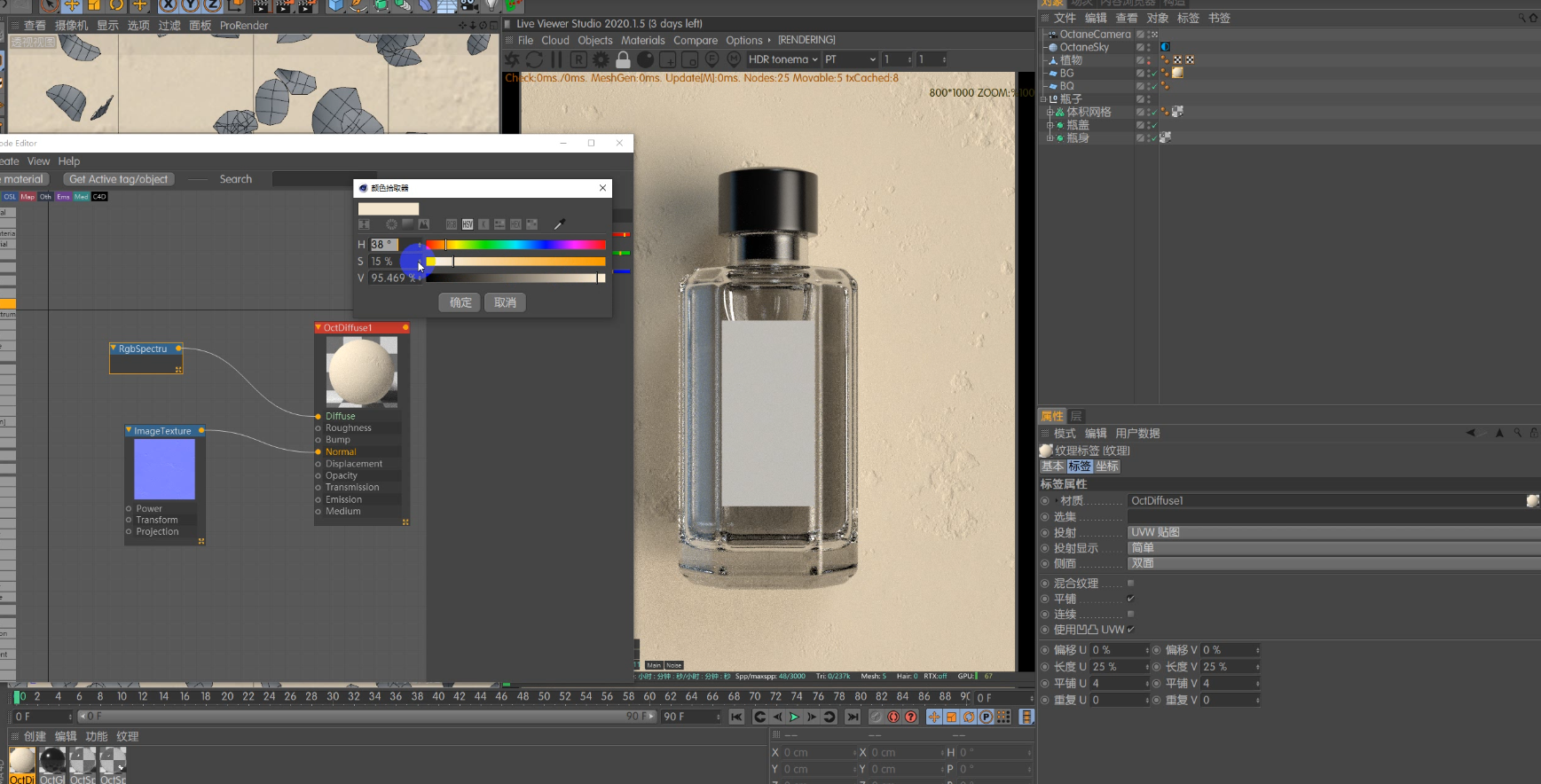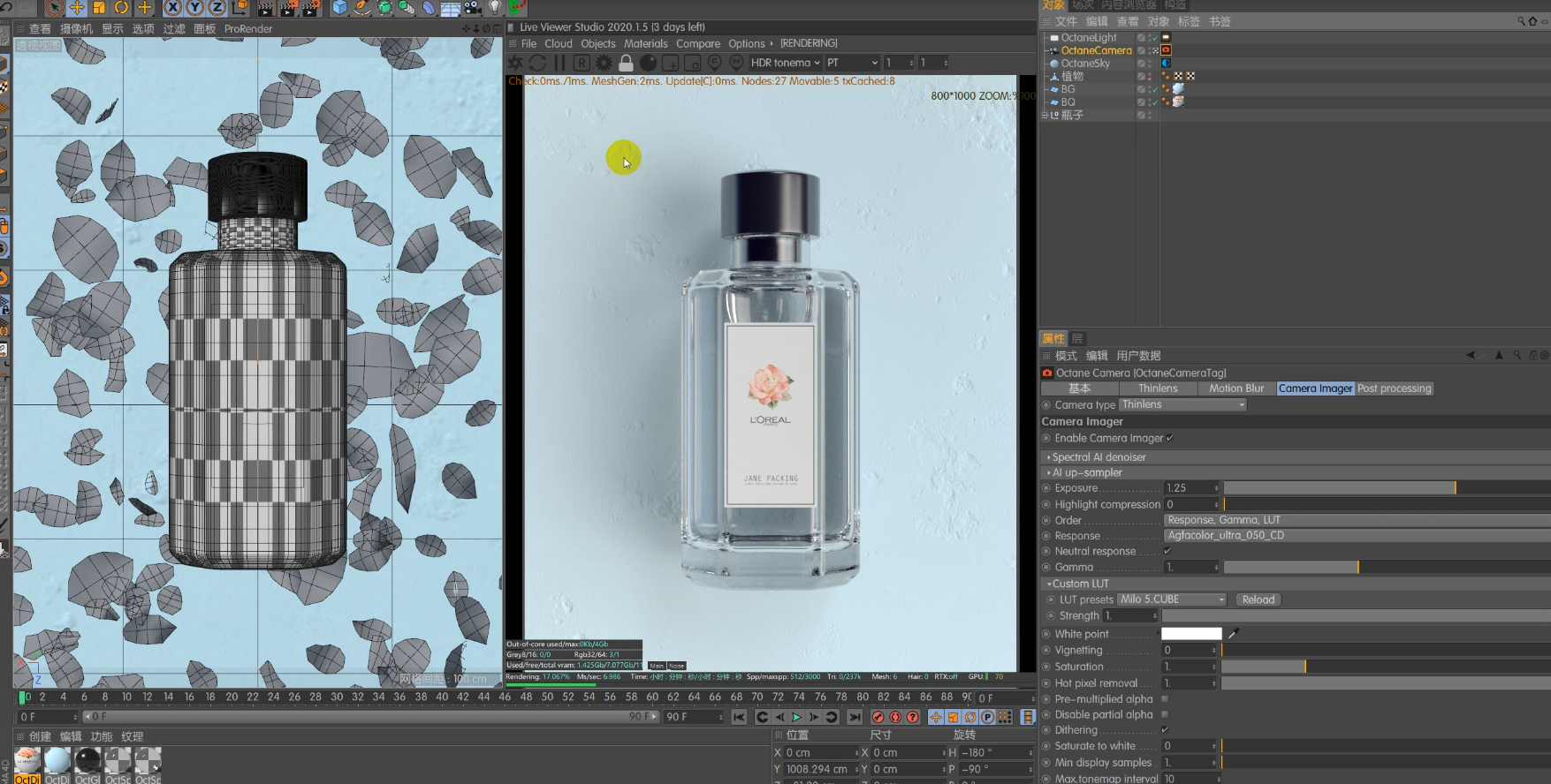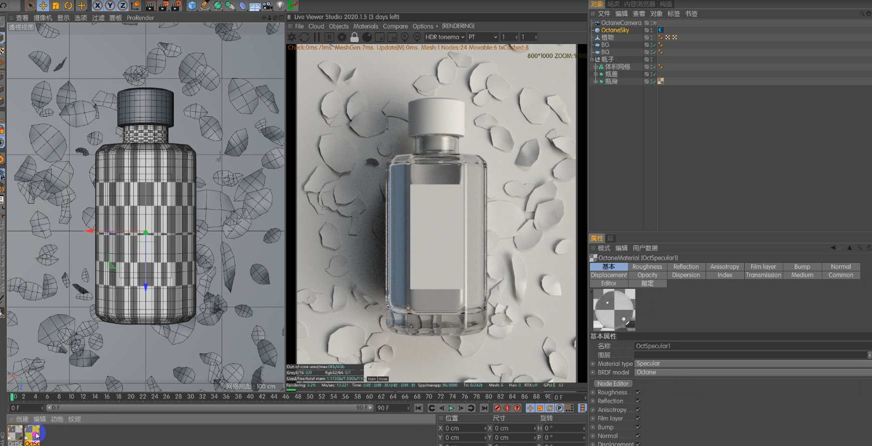 知识点:玻璃瓶建模+玻璃材质+液体+灯光